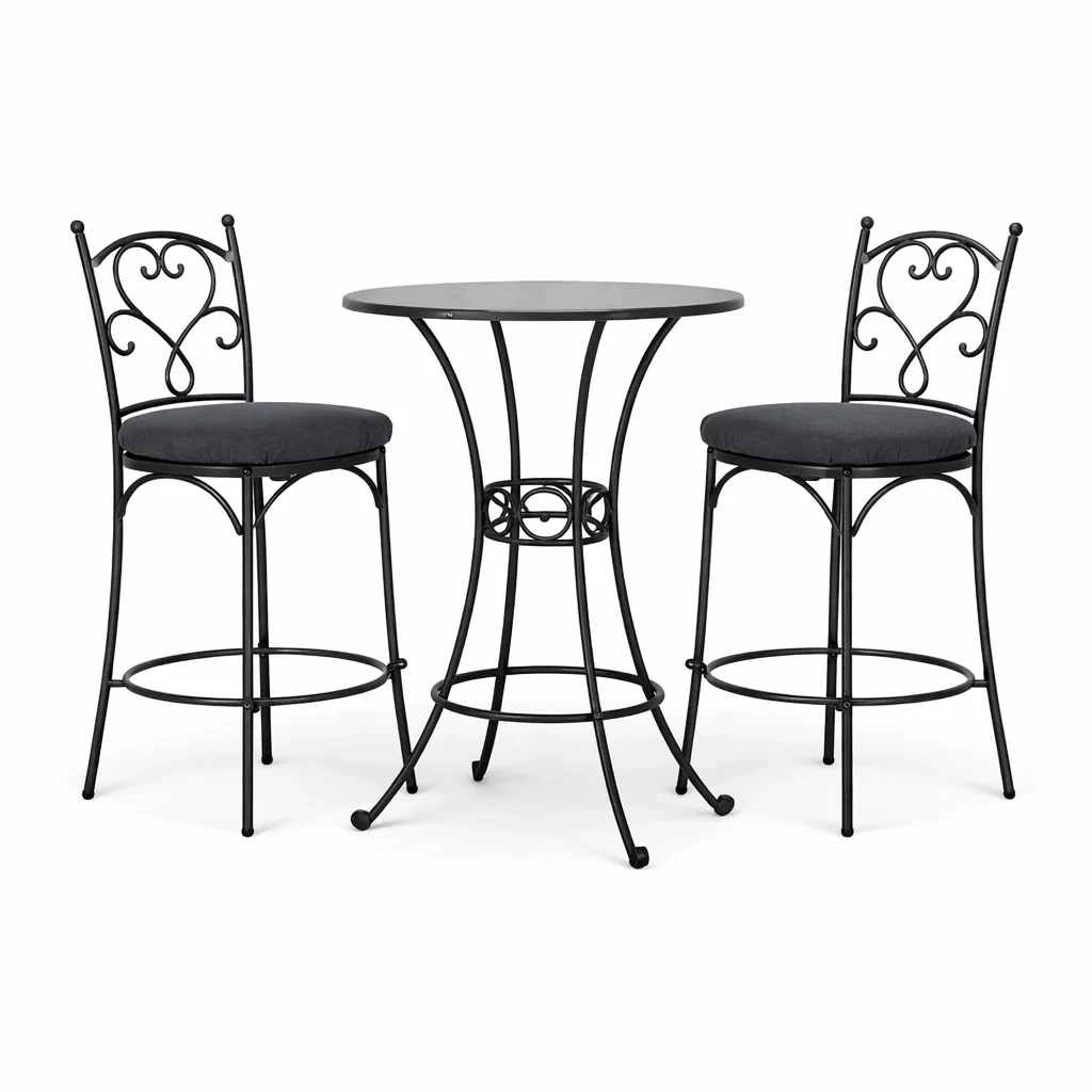 Ensemble de bar avec table bistrot et tabourets en métal noir