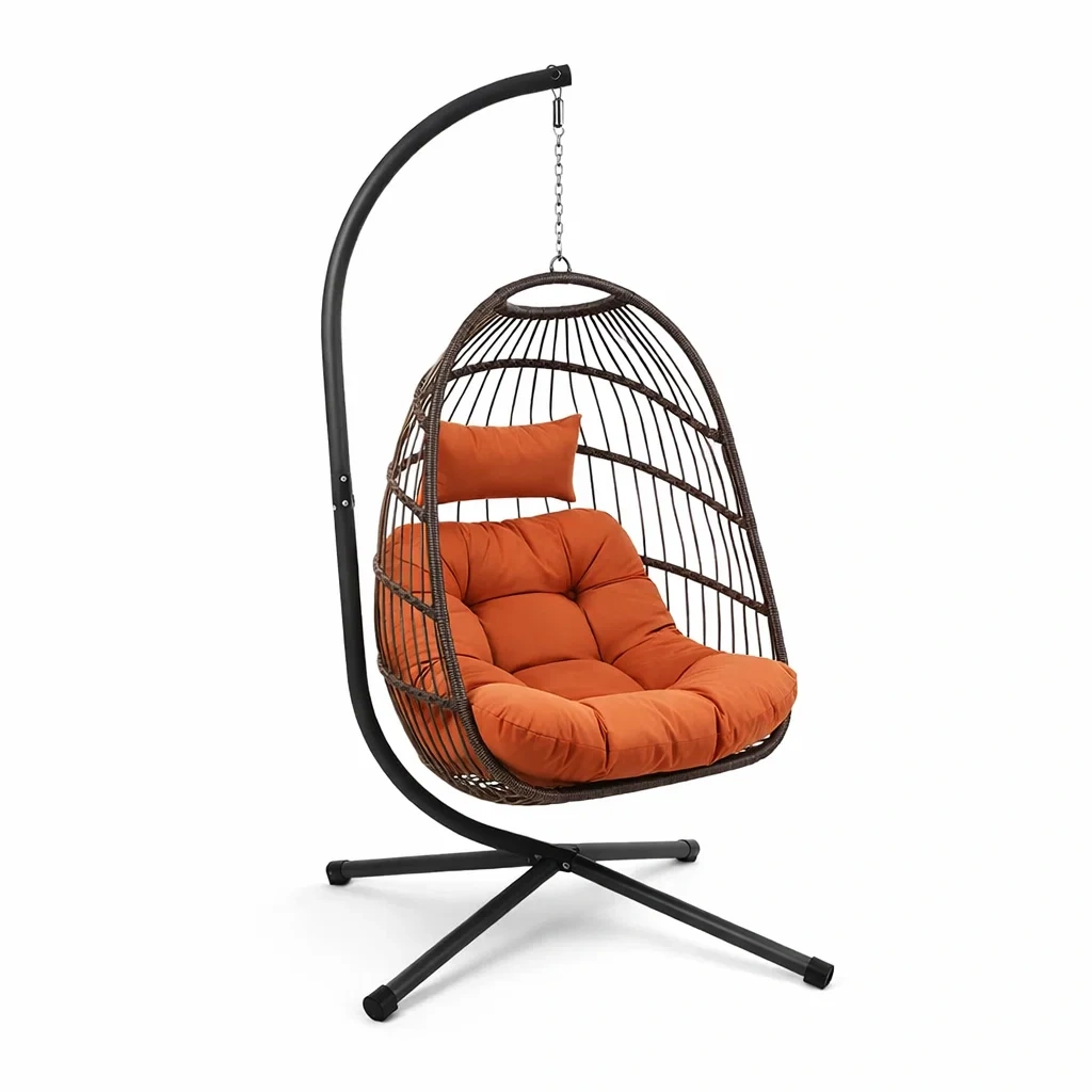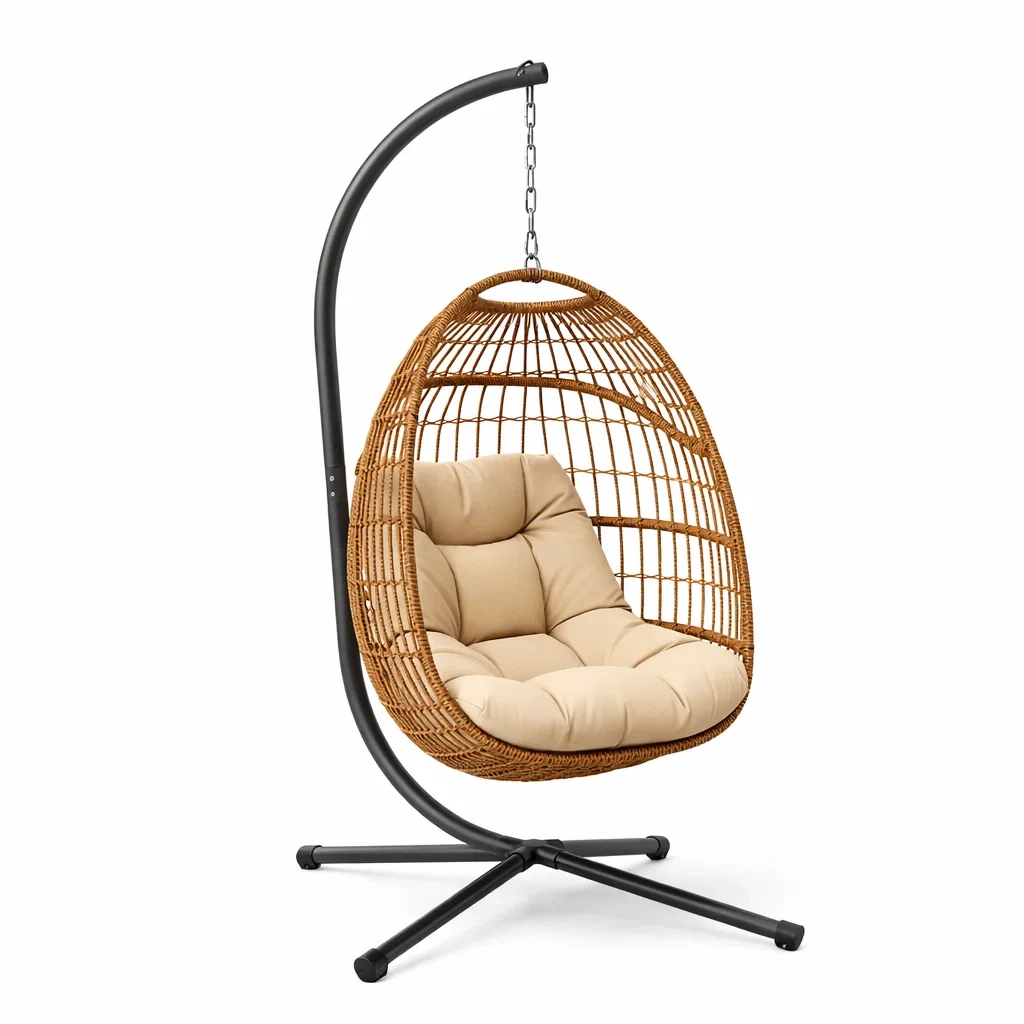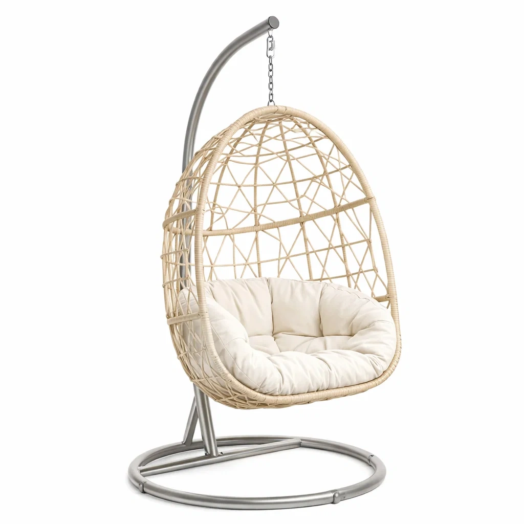 Fauteuil œuf suspendu en rotin avec support en acier et coussins amovibles