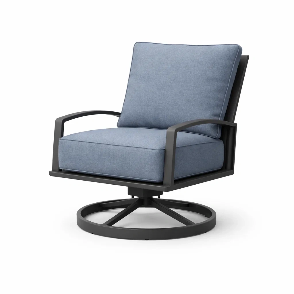 Fauteuil pivotant d’extérieur en aluminium et tissu polyester bleu
