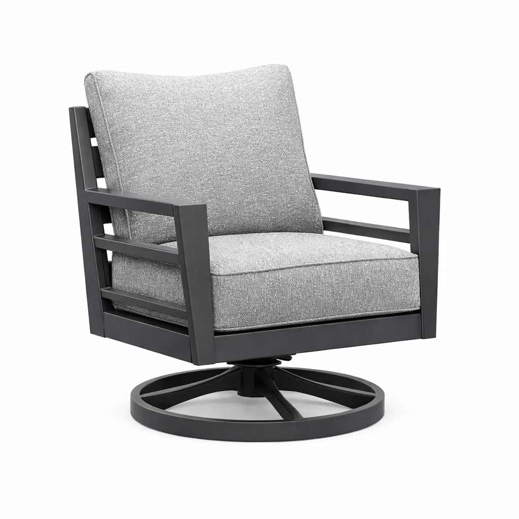 Fauteuil pivotant d’extérieur en aluminium et tissu polyester gris