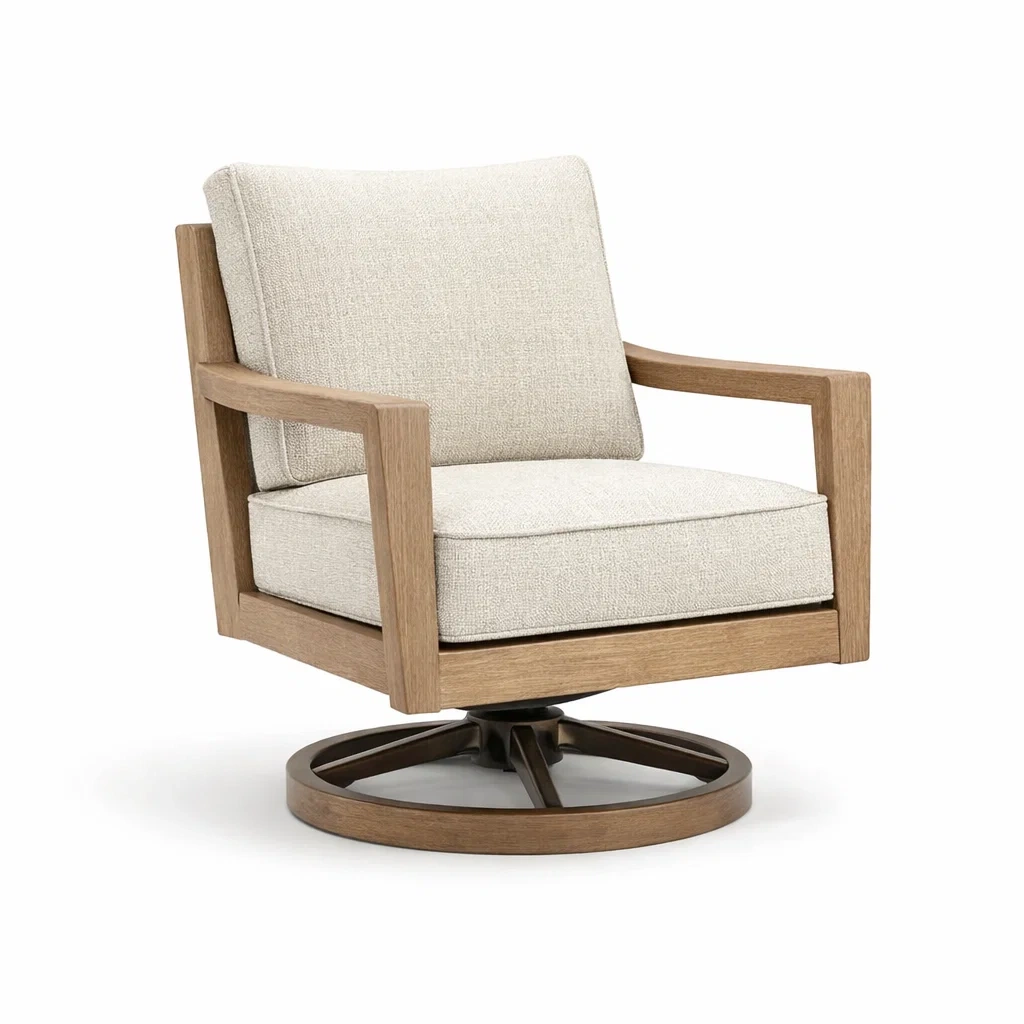Fauteuil pivotant en aluminium avec coussins en polyester beige