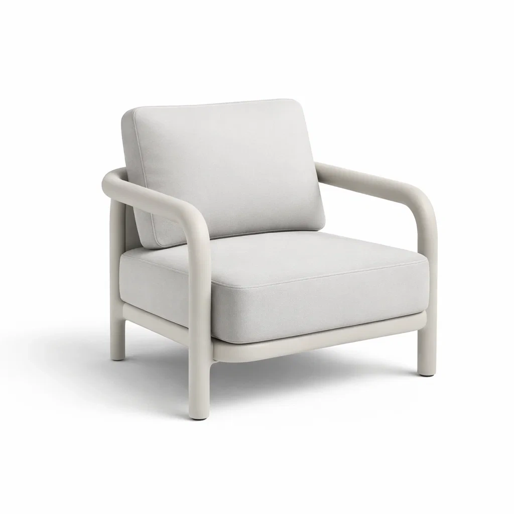 Fauteuil en tissu polyester gris clair avec cadre en acier