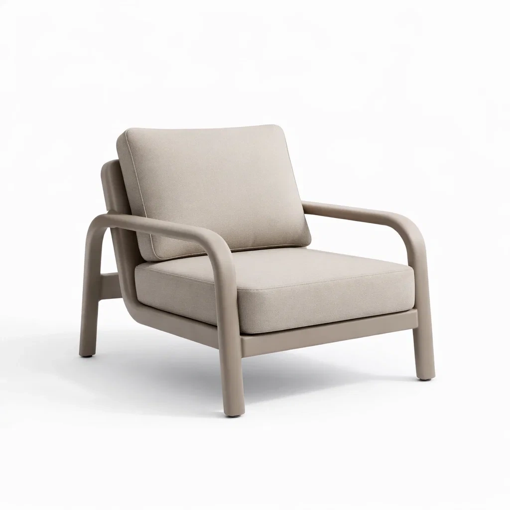 Fauteuil en métal et tissu polyester beige