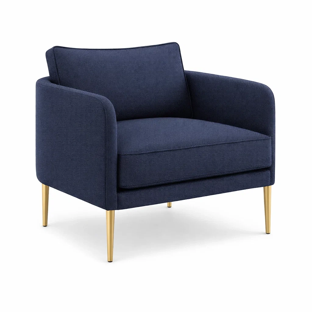 Fauteuil en tissu polyester bleu avec pieds en métal doré