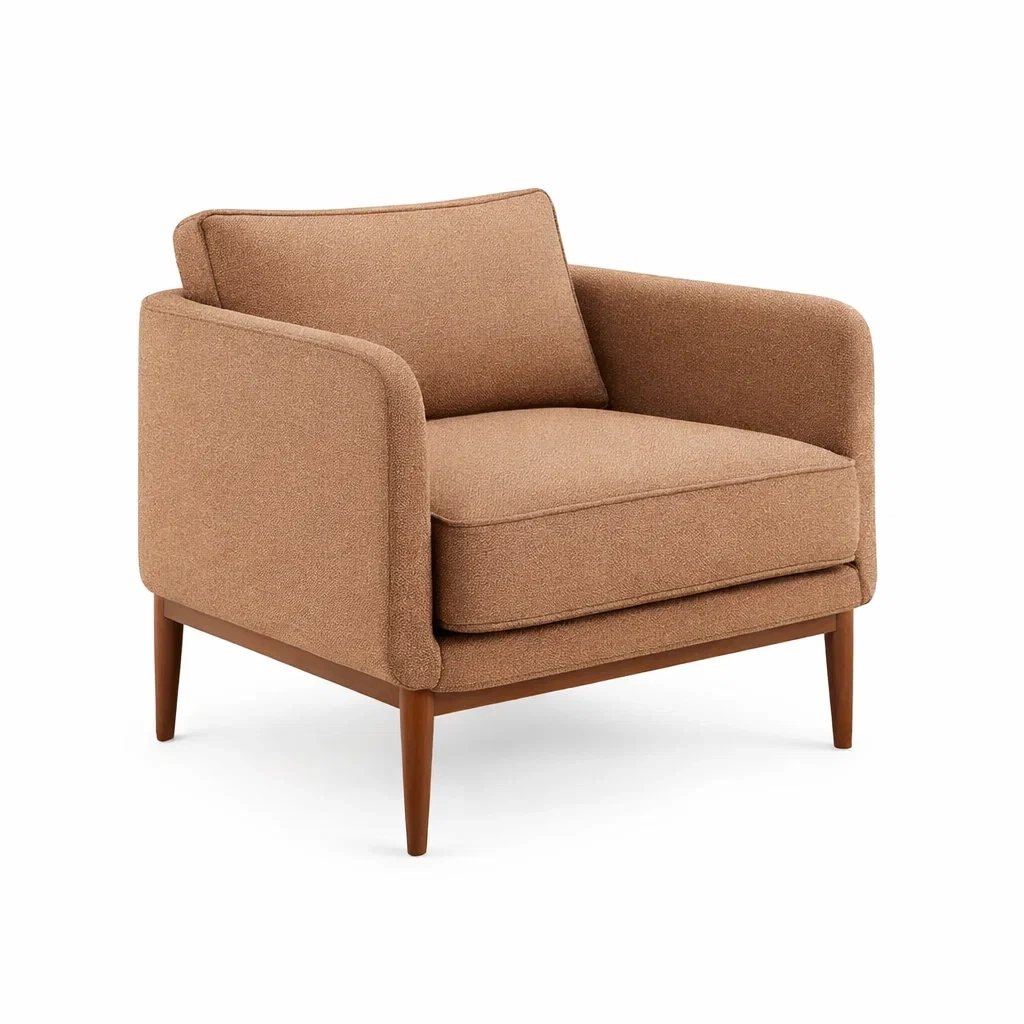Fauteuil en tissu polyester marron avec pieds en bois 75x80x85 cm