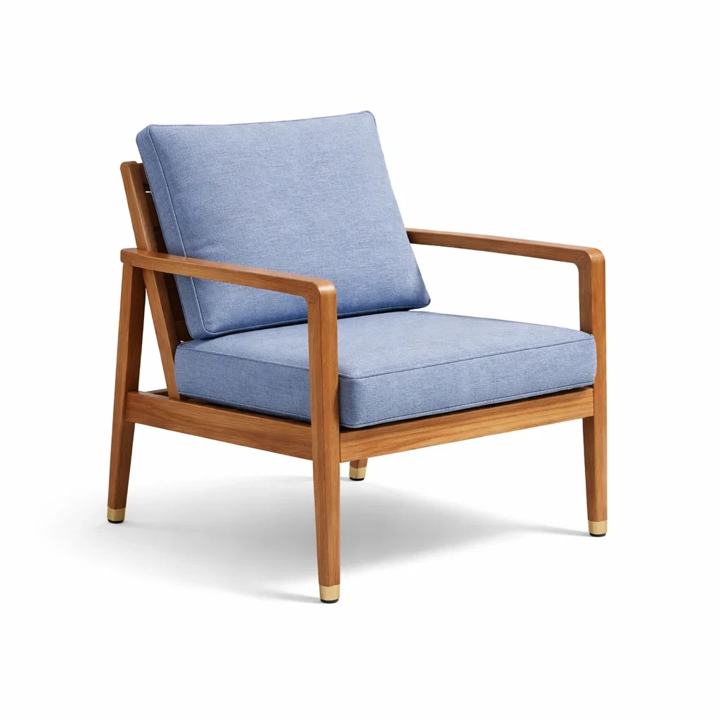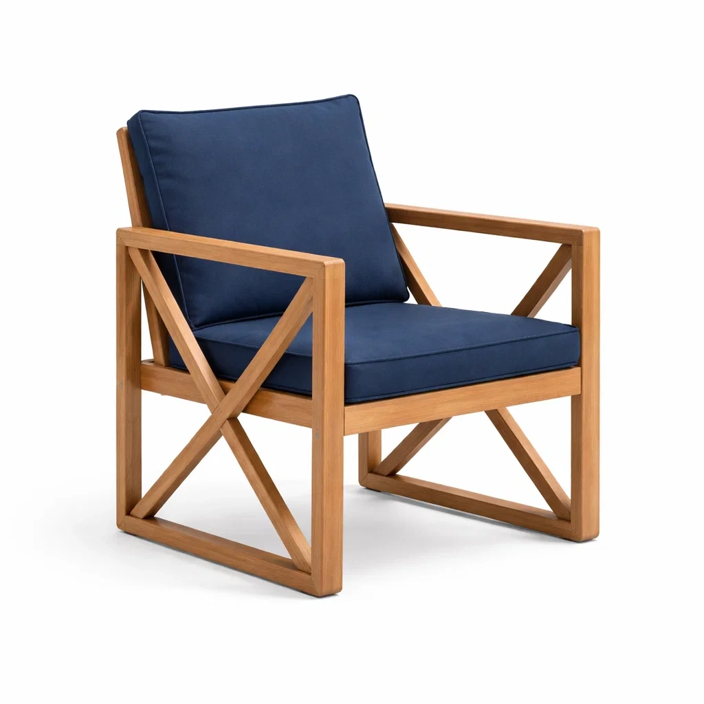 Fauteuil en bois massif avec coussin en polyester bleu