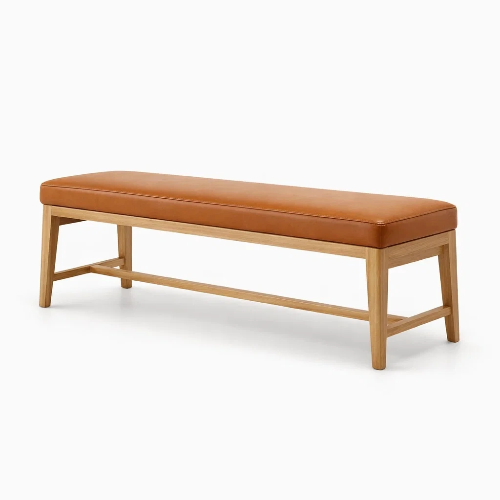 Banc en bois et cuir synthétique marron