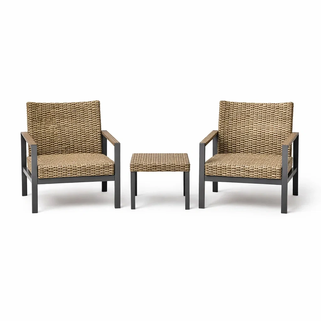 - 2 fauteuils avec structure en aluminium et résine tressée en polypropylène.