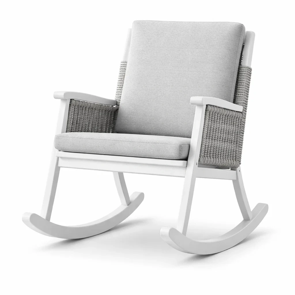 - Cadre en bois avec accoudoirs et dossier en corde tressée