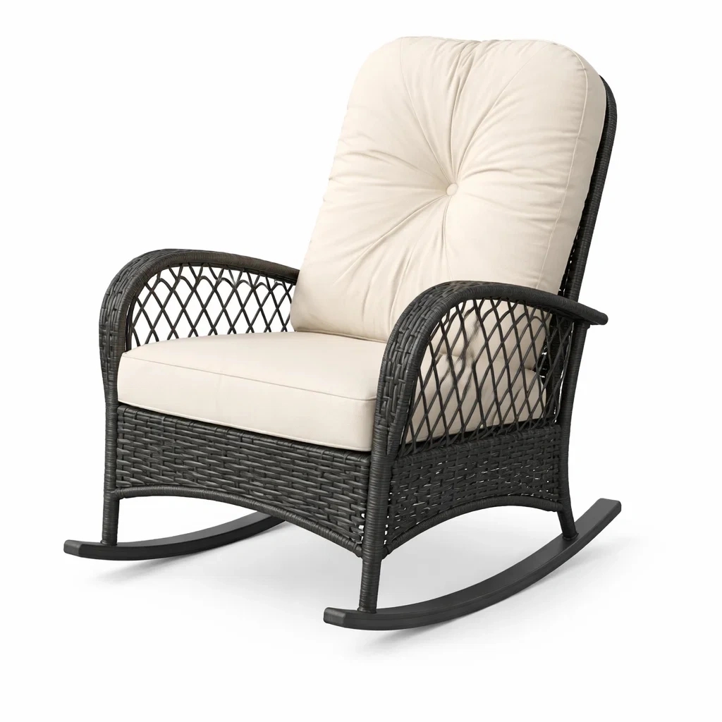 Ce fauteuil à bascule est conçu avec un cadre en rotin synthétique de haute qualité et une structure en acier durable. Les coussins sont fabriqués en tissu polyester avec un remplissage en mousse polyuréthane pour un soutien optimal. Les accoudoirs incurvés ajoutent du confort, tandis que la housse de coussin amovible facilite l'entretien. Destiné à une utilisation en intérieur, ce fauteuil possède une capacité de charge de 120 kg.