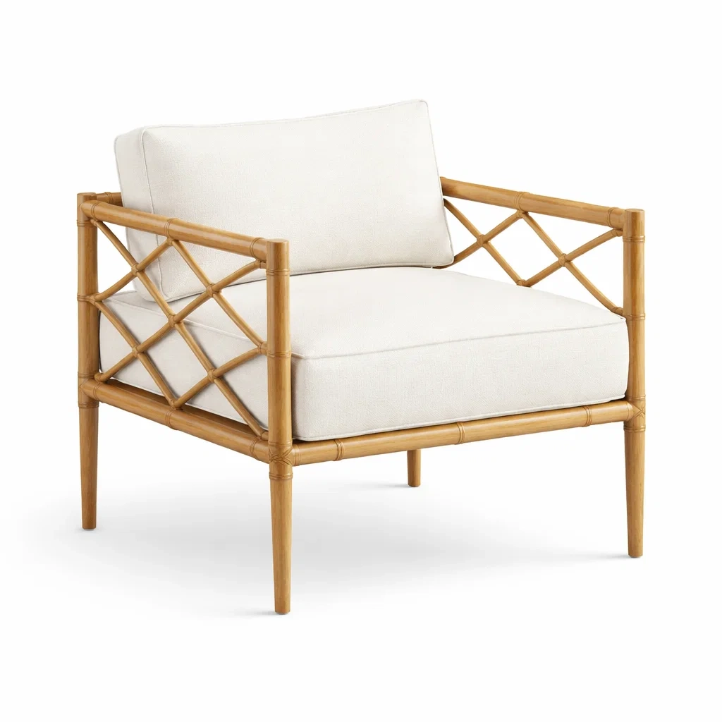 Fauteuil en bambou avec coussins en tissu blanc