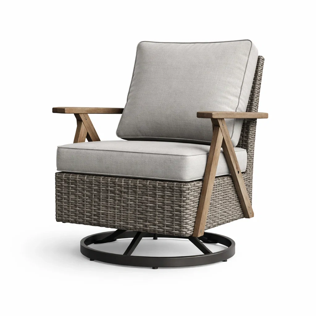 Fauteuil pivotant en rotin synthétique et teck avec cadre en métal 68x75x89 cm